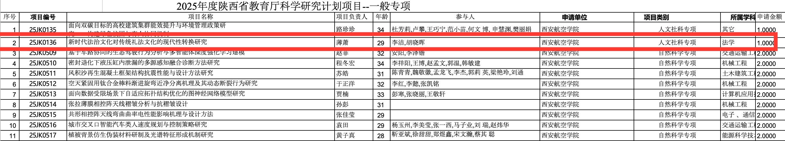近日,陕西省教育厅发布了《关于印发2025年度科研计划的通知》(陕教函〔2025〕1131号),马克思主义学院薄萧博士负责的《新时代法治文化对传统礼法文化的现代性转换研究》获准人文社会科学专项立项,项目经费1万元。