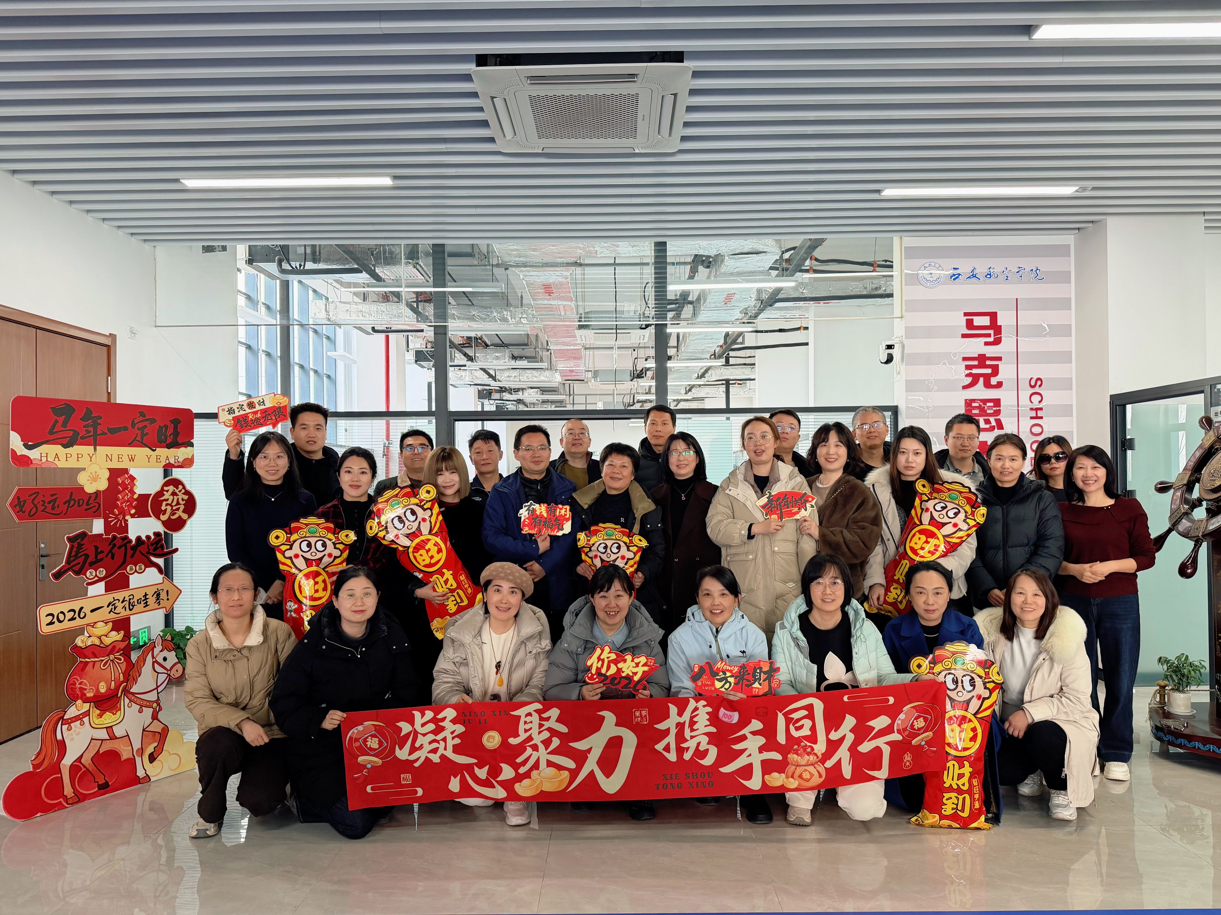 1月16日上午,马克思主义学院全体教职工欢聚一堂,成功举办2026年新年联欢会。活动旨在总结工作、表彰先进、喜迎新春,现场气氛热烈,充分展现了学院团结、和谐、奋进的精神风貌。