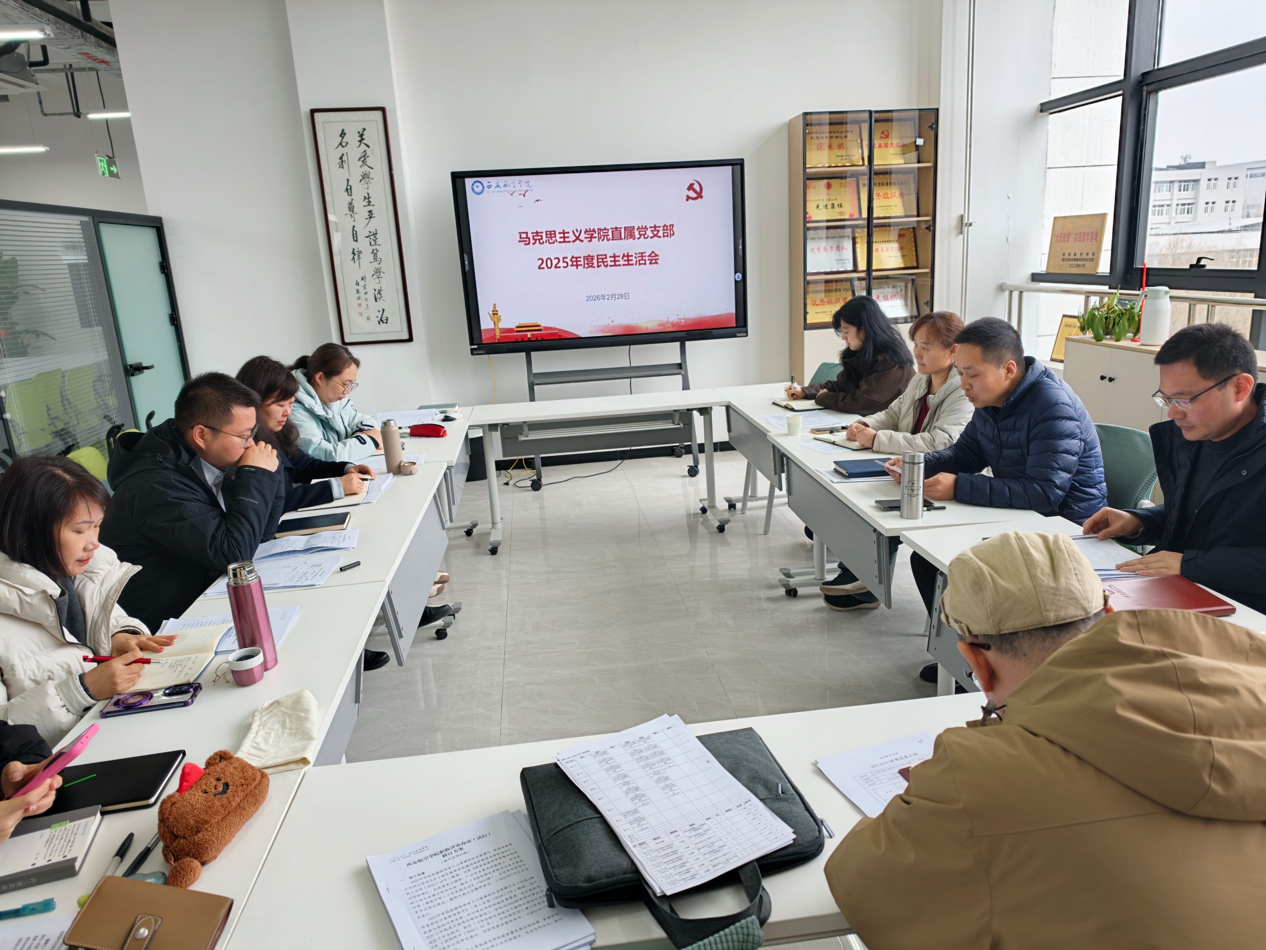 2月28日,马克思主义学院在阎良校区召开2025年度领导班子民主生活会。学院班子成员参加会议,党支部委员、综合办公室副主任、党小组组长及各教研室主任列席,党委统战部副部长侯睿到会指导,会议由学院直属党支部书记赵建涛主持。