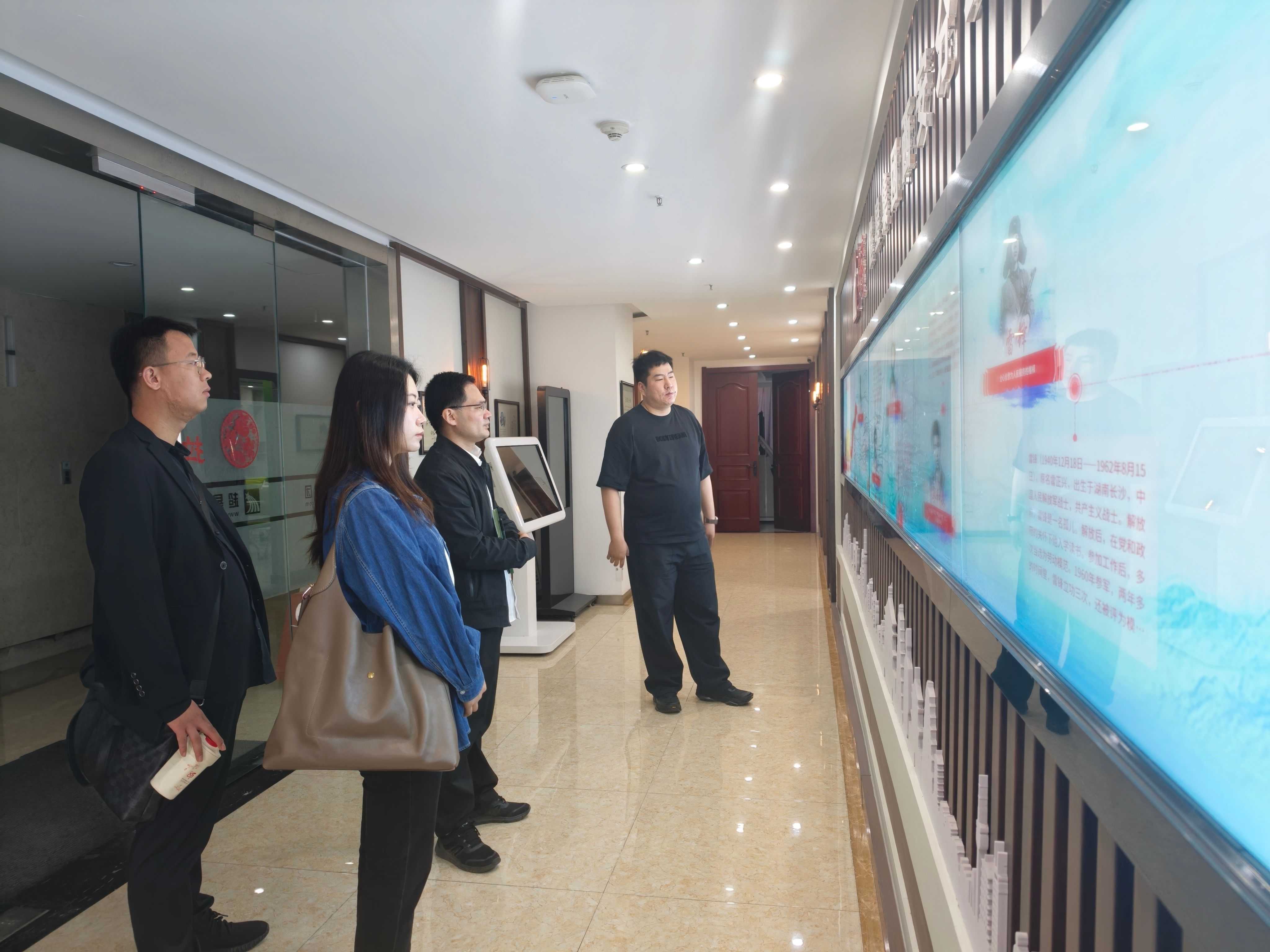 王国成一行在超星集团西安分公司业务经理刘章哲的陪同下,参观了公司的智慧教育展厅、慕课教学视频录播区等区域。